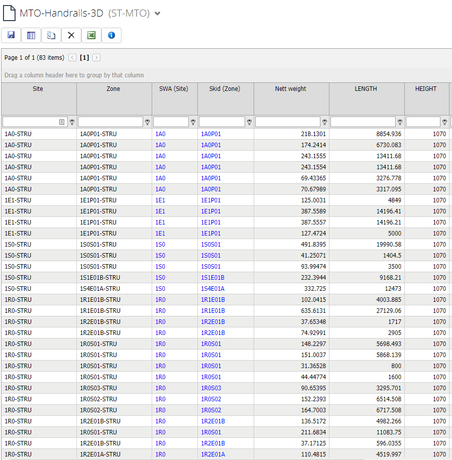 Whether they need to know the total meters of 2” pipe required for their entire facility, or the weight of the handrails on a skid, the real-time data is easily accessible and readily parsed to suit their needs.